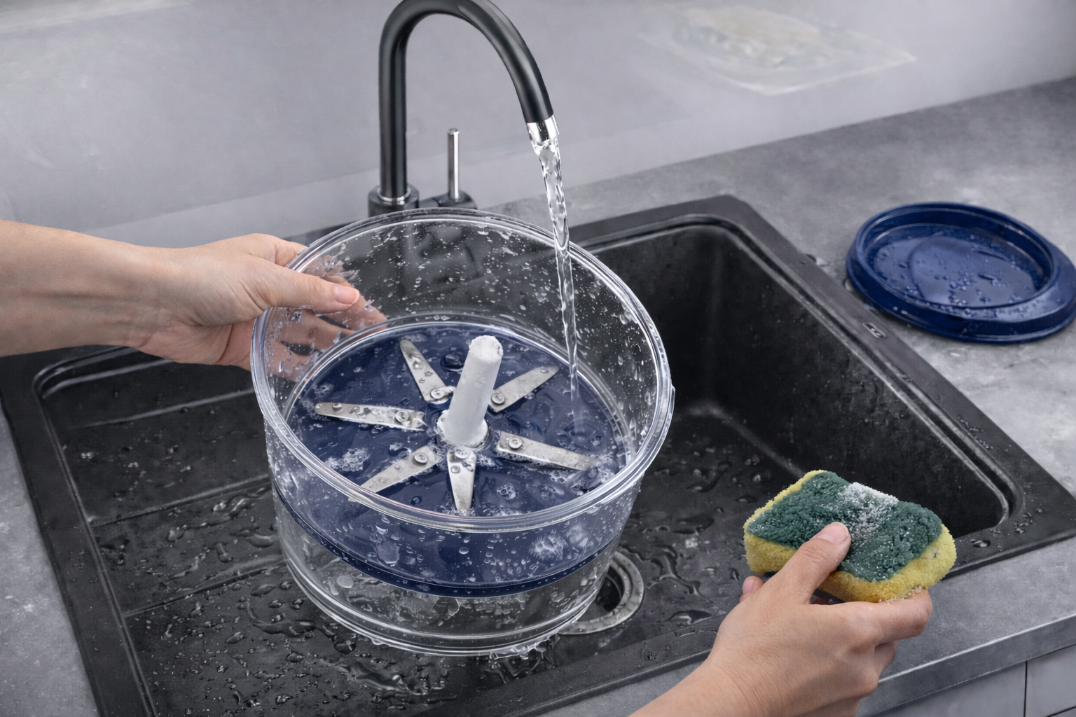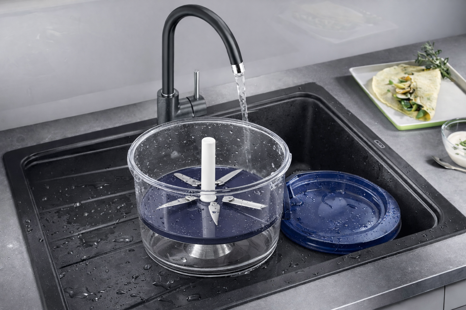 It’s very easy to clean. The transparent body and detachable parts allow the blades to be removed and rinsed directly under running water, preventing food residue from building up.